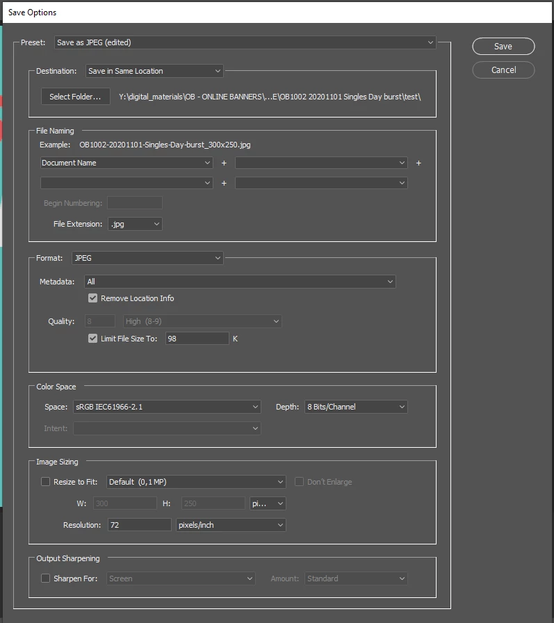 Camera RAW - open and save multiple JPEGs, with kb limit, raises the kb size of files below limit