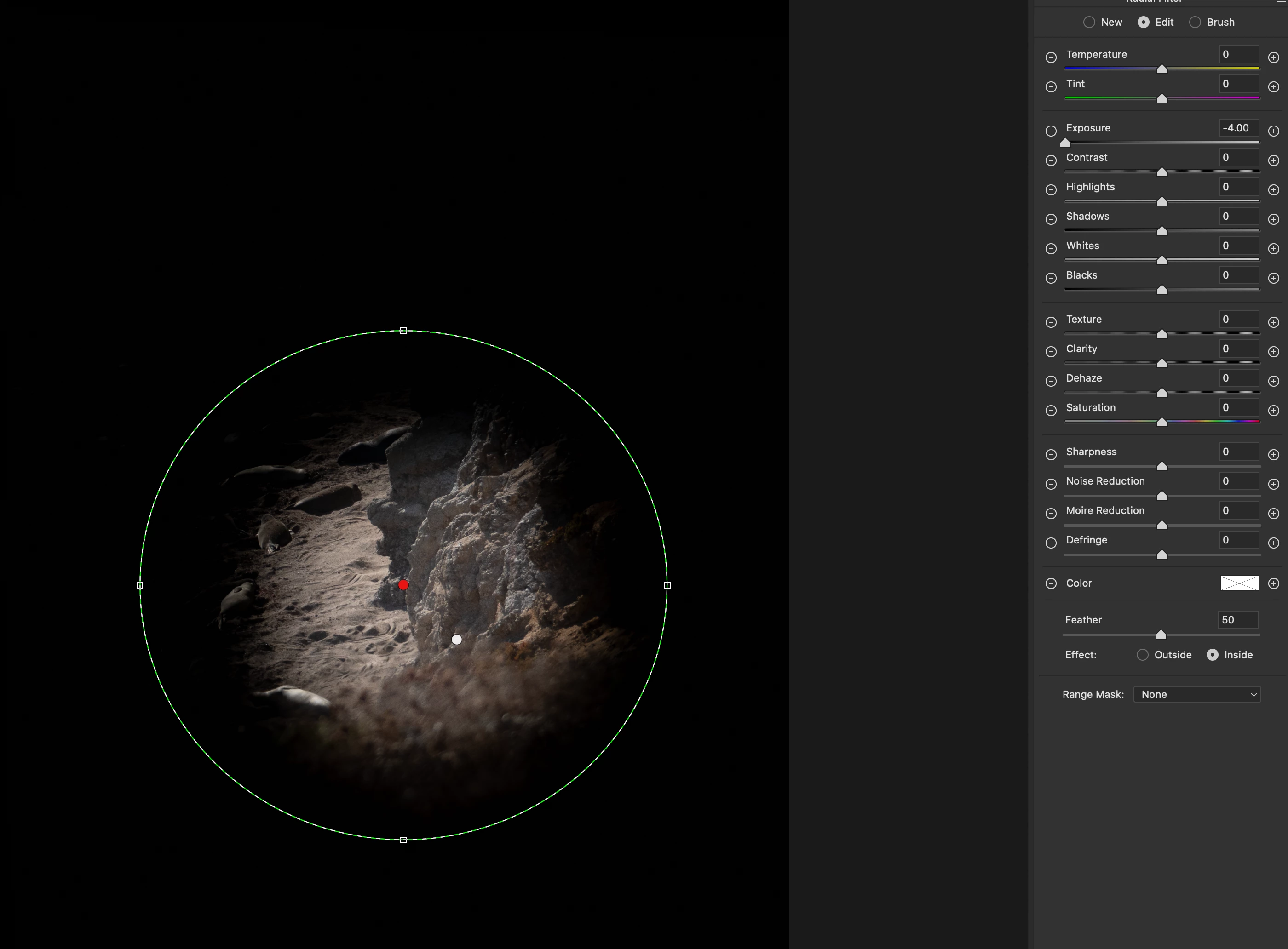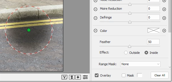 Camera Raw Radial filter stopped working for "inside" setting, only works for "outside"