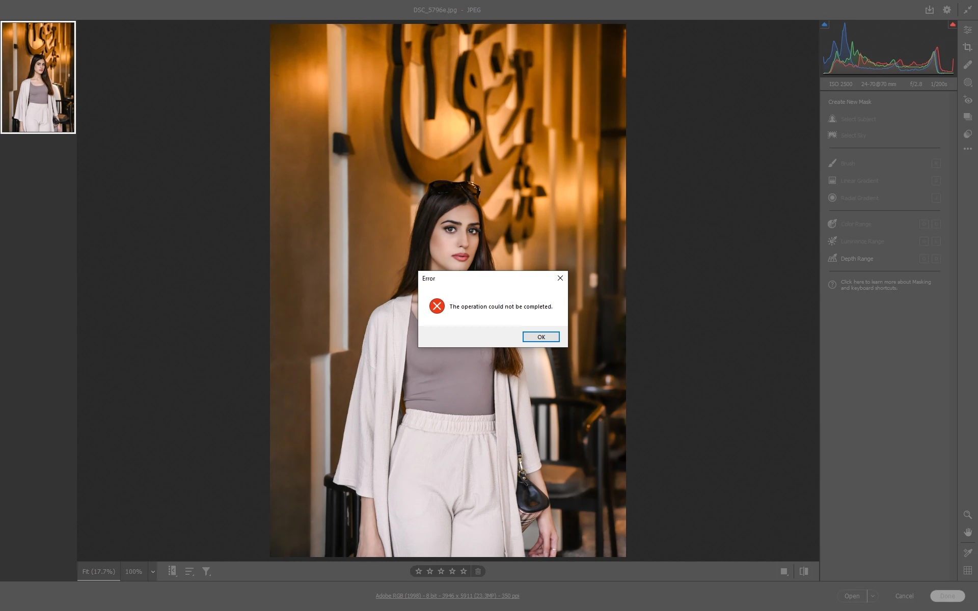 I got error when trying to select subject or select sky (the operation could not be completed)
