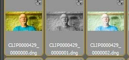 Below is another picture, the same sequence and files from the above in Bridge, reimported/reloaded. However this is the second frame, which should be black and white like how I corrected it in Adobe Bridge.