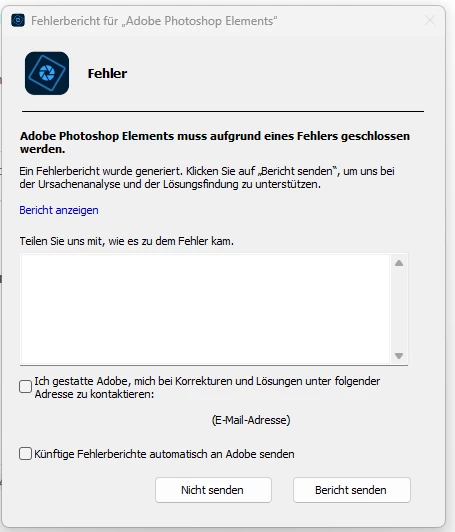 </crashreport>Ich habe bereits meinen Rechner frisch installiert (Windows 11) und das aktuelle Photoshop Elements 2024 gekauft bzw. installiert.