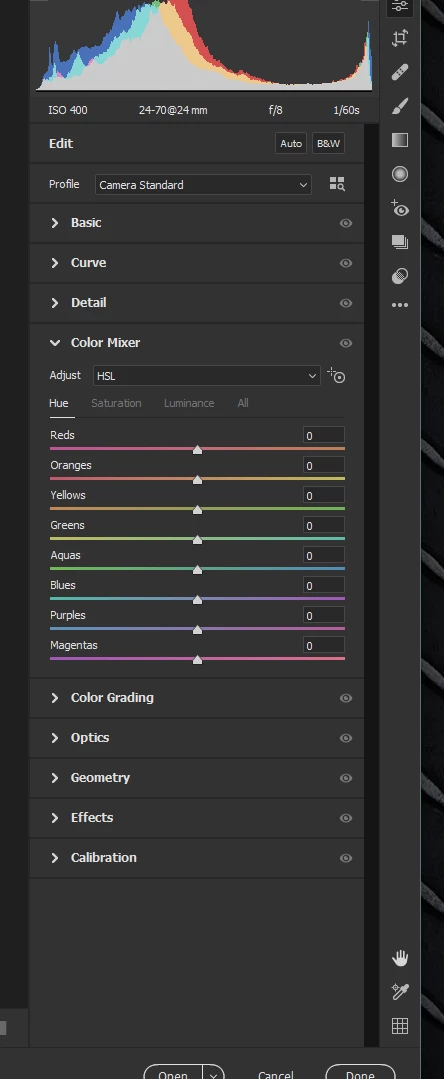 My camera raw is missing some tools on the tool bar like the hsl tool is there a way to fix this and adjust the tool bar