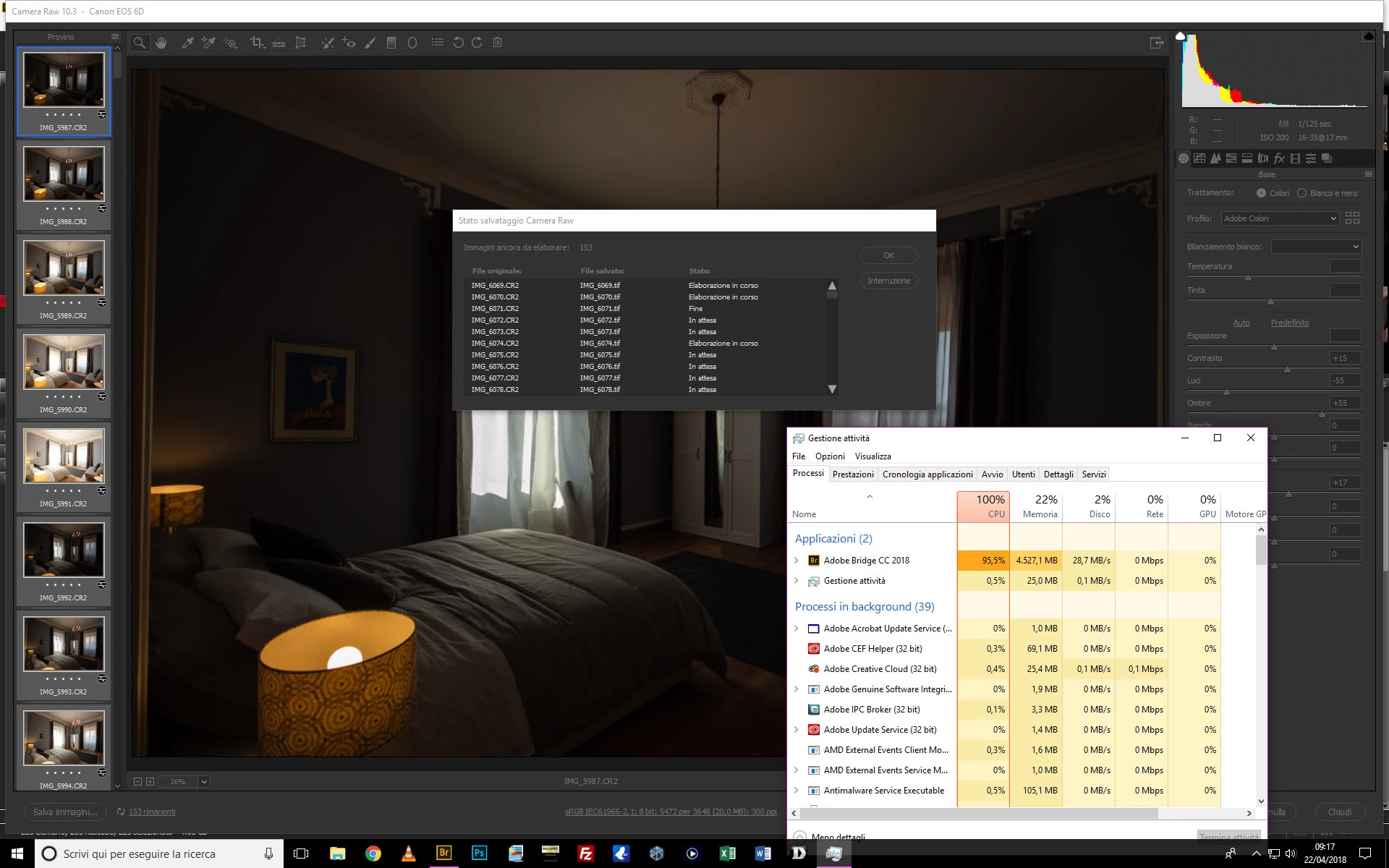 Since the first cc version when saving files from camera raw (opened from bridge) the CPU usage goes up to 100%, it took 20minutes to save 1000 raw files, and that's fine, but i can just look at him saving, not even listen to some music because it lag.