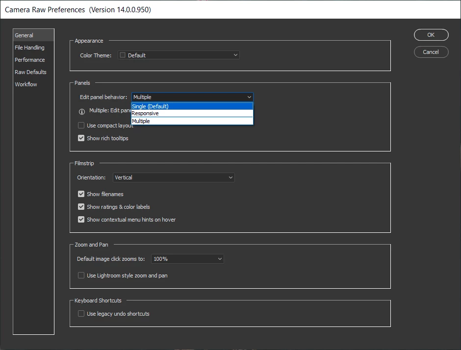 I'm working with ACR 14 (Windows 10) and the Edit Panel is really frustrating. I regularly use 5-6 of the subpanels on every job. Having them all in one big panel is annoying (too much scrolling), and jumping back and forth in Single Panel Mode, to tools that used to be separate (i.e. Targeted Adjustment Tool), to the Masking Panels, etc. is not user friendly either. Keystrokes with four keys are like playing Twister. Yet, Red Eye Removal Tool still has it's own spot and and two key keystroke.