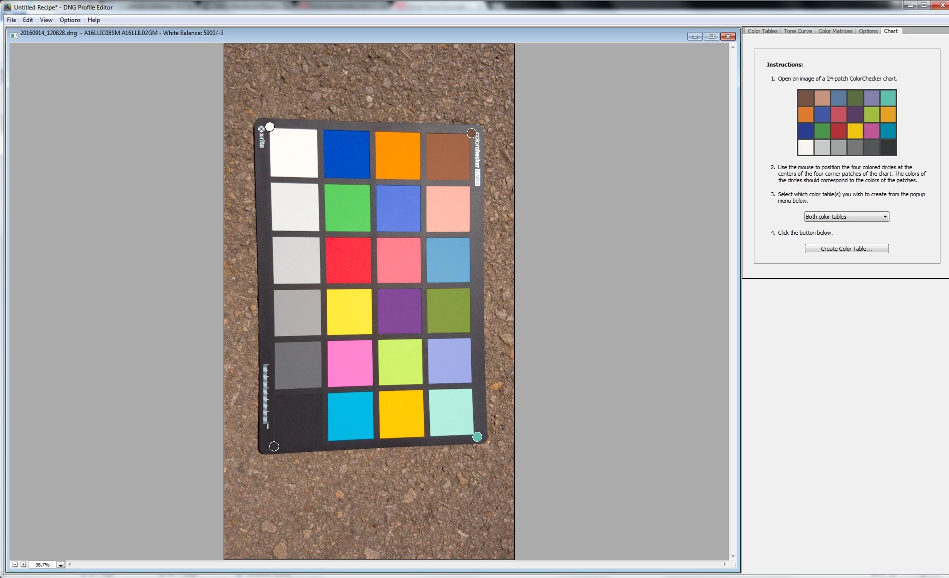 My cellphone is a Samsung Galaxy S6 and it take RAW photos in .DNG format. I took a photo of the Color Checker in .DNG, opened it on the DNG Profile Editor, set the 4 corners of the color checker at the tab "chart", and then click "creat color table..." button, exactly as I do do create the profiles for my Canon T3i and Canon 6D.