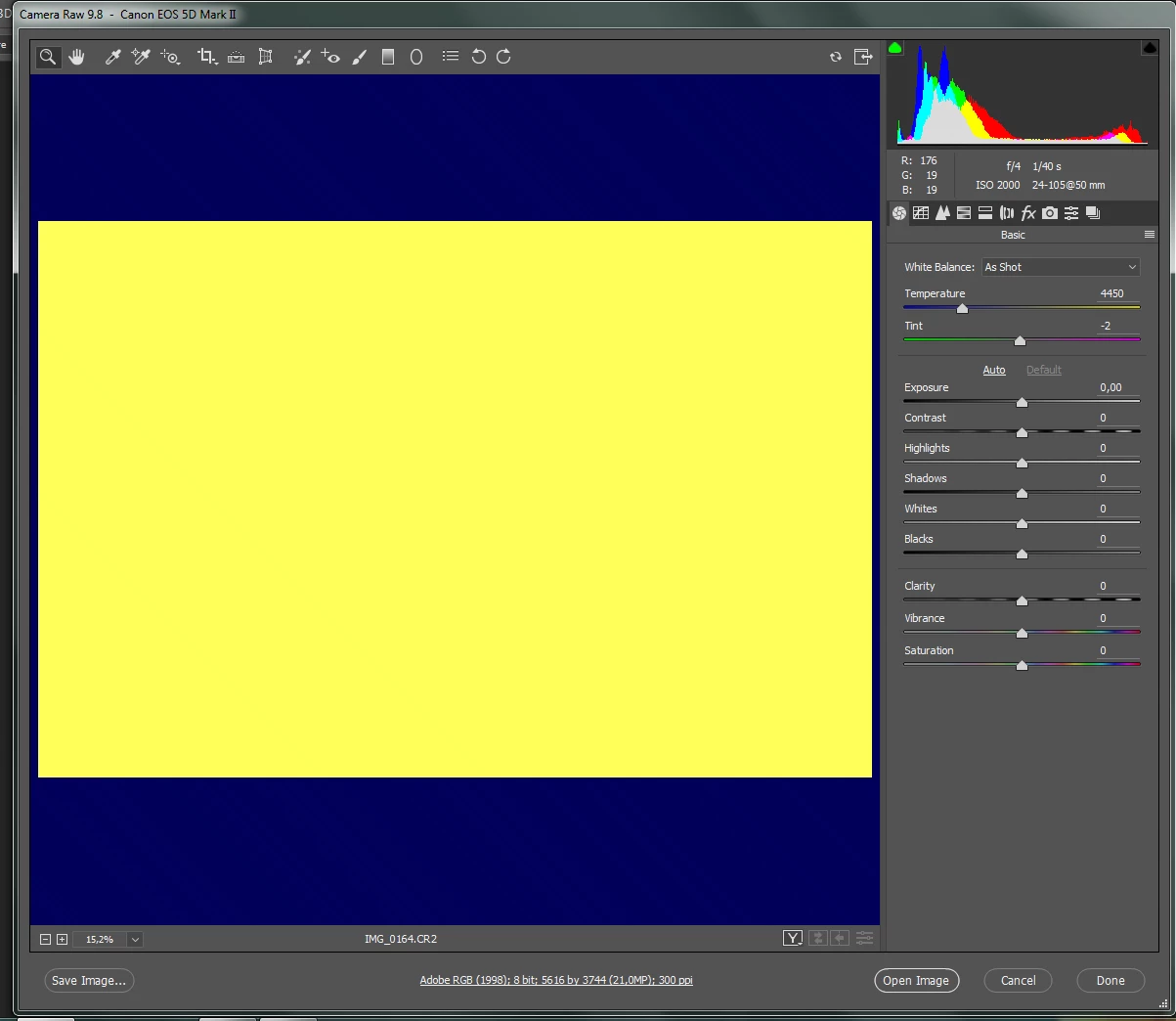 In Bridge I can see completed icons of my photo files (cr2), trying to open it in Camera Raw 9.8 but can not see it correcly - I always see onle yellow on darkblue space(