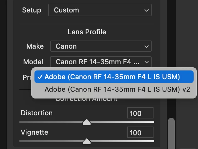 There are 2 lens profiles for Canon RF 14-35 F4 lens. One is fine, the second one (V2), is expanding the crop, so it's not what the photographer saw in camera. Is there a way to remove the second profile so that it is not used in error by our editors?