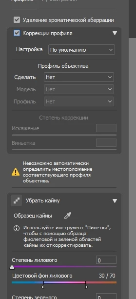 Hello! I work in camera raw and lightroom. When I process images taken on the canon eos r together with the canon rf 50mm 1.8 lens, the automatic correction of distortion and vignetting is not enabled. Each time you have to choose manually. Please fix this problem.