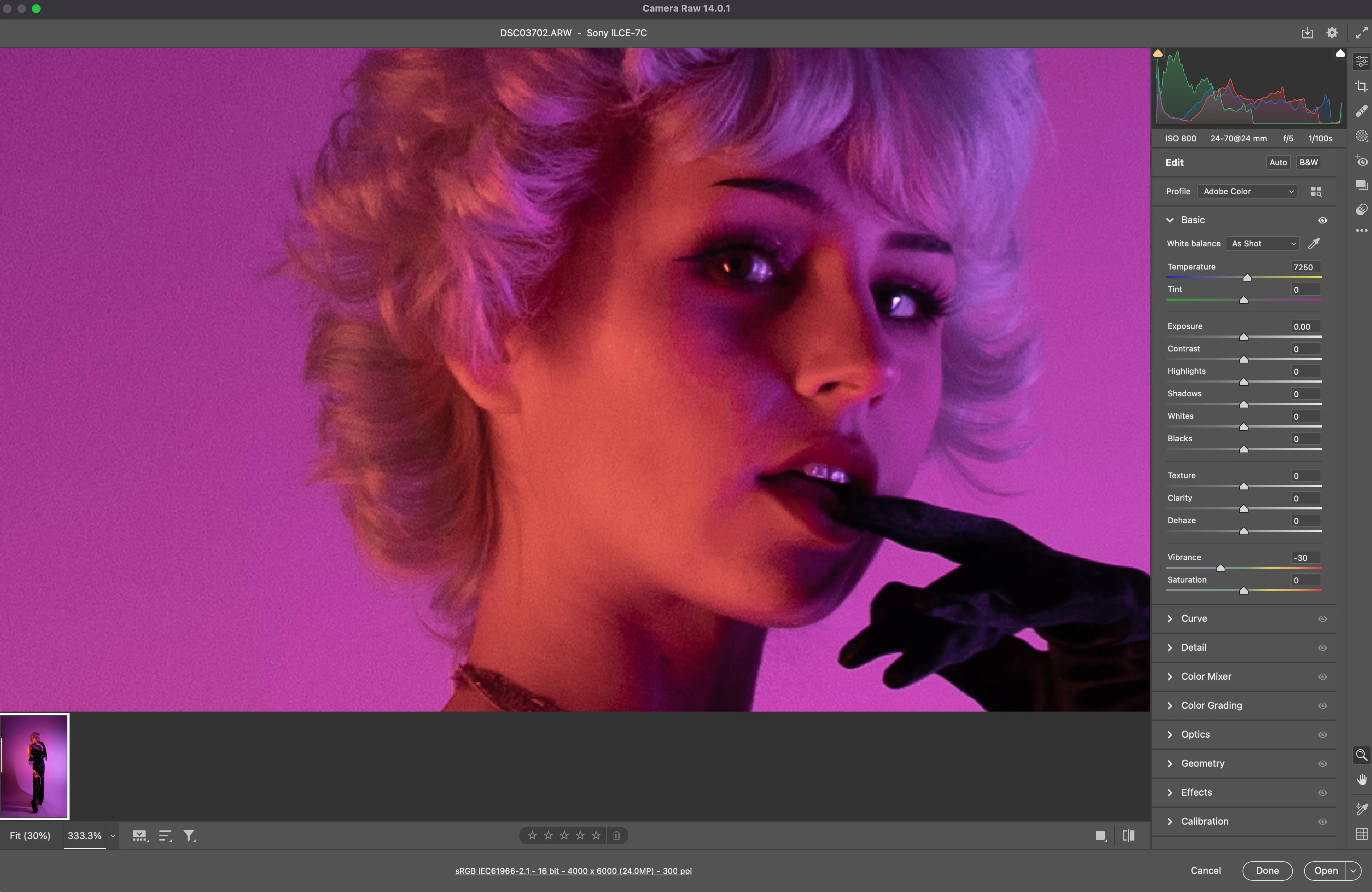 Hi! I've googled this issue, and even saw a thread or two about this on here, but even after trying all suggestions I still am unable to get rid of weird color bands rather than smooth gradients in my raw photos. I'm using two colored led Pavo Tubes as a light source and so there should be a nice transition from one color to the other. But when I bring the photos into ACR I get hard lines/bands where one color stops and the next begins. After editing them in RAW and bringing them into Photoshop the bands are still there and the only way I can make them look a little better is through editing/smoothing the transiton. But there even after doing that there is still a very noticable line of color. I've attached examples of an untouched photo showing the banding as well as one of the same photo with vibrance turned down slightly which shows the banding even more, and then an edited photo still showing signs of the band. Also attached are screenshots of my settings. Please let me know if anyone knows what's going on here! Much appreciated!