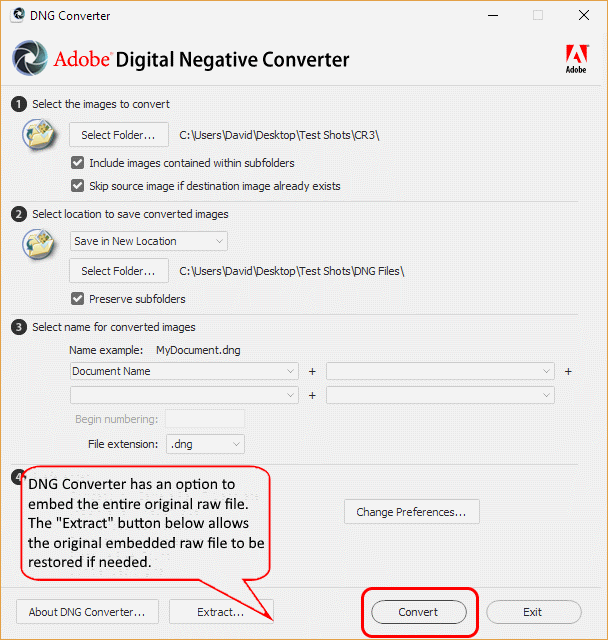 Normaly I used the DNG Converter to convert all my photos to .dng-files.