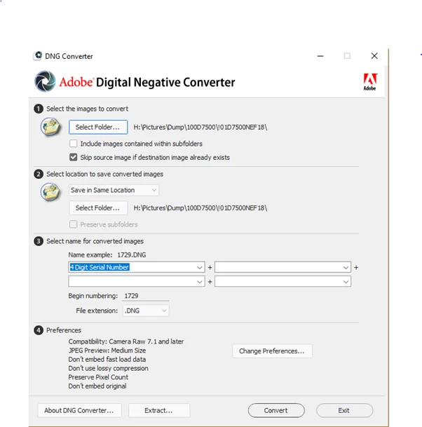 I use LR 4. I have upgraded my camera to a D7500 which uses a newer version of RAW which LR4 does not read and Adobe don't seem to support the products they have sold in the past which seems a little off to say the least. Furthermore, the options of forums only being LRcc is sad and not expected from a industry leader. however, I have down loaded the Adobe RAW converter but the quality produced is poor 1024 x 643, but still retaining the 20 meg file size. there doe snot appear to be a selective option to chose a higher resolution. please advise a solution. regards alan