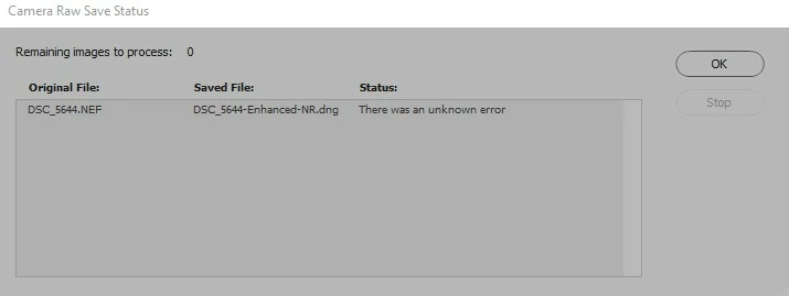 Tried Enhance again and received the same results. I am not sure what the issue is. I am using the latest version of Camera Raw and my system is up to date. I have 16gb of ram and using Win 10 Pro. The processor is Intel(R) Core(TM) i7-10510U CPU @ 1.80GHz, 2304 Mhz, 4 Cores(s), 8 Logical Processor(s)