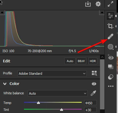 - Open a RAW file in Camera Raw.