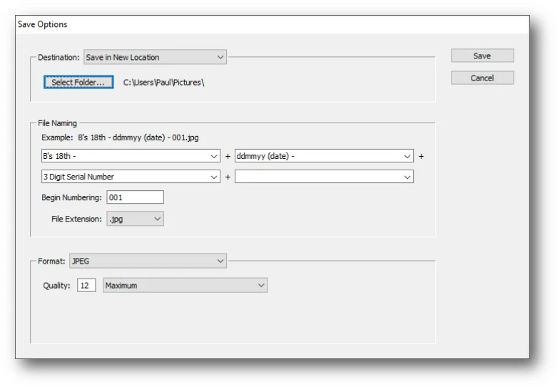 So although I can insert spaces and a hyphen in the first file-name field - because it's text - the same elements between the date and serial number fields have to be in their own [text] field.