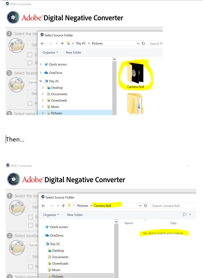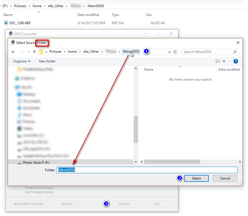 Hi - I just tried DNG Converter 9.12.1 on Win 8.1 and Win 10 and neither (2 different computers) can see the RAW files. I've tried it will uncompressed RAW L and lossless compressed RAW L files, both when the files are on the hard drive and when they're on the XQD card reader via USB. I've attached screenshots of what it looks like. Help please? Thanks.