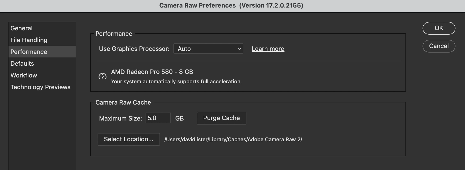 Photshop Camera RAW Prefs Pane