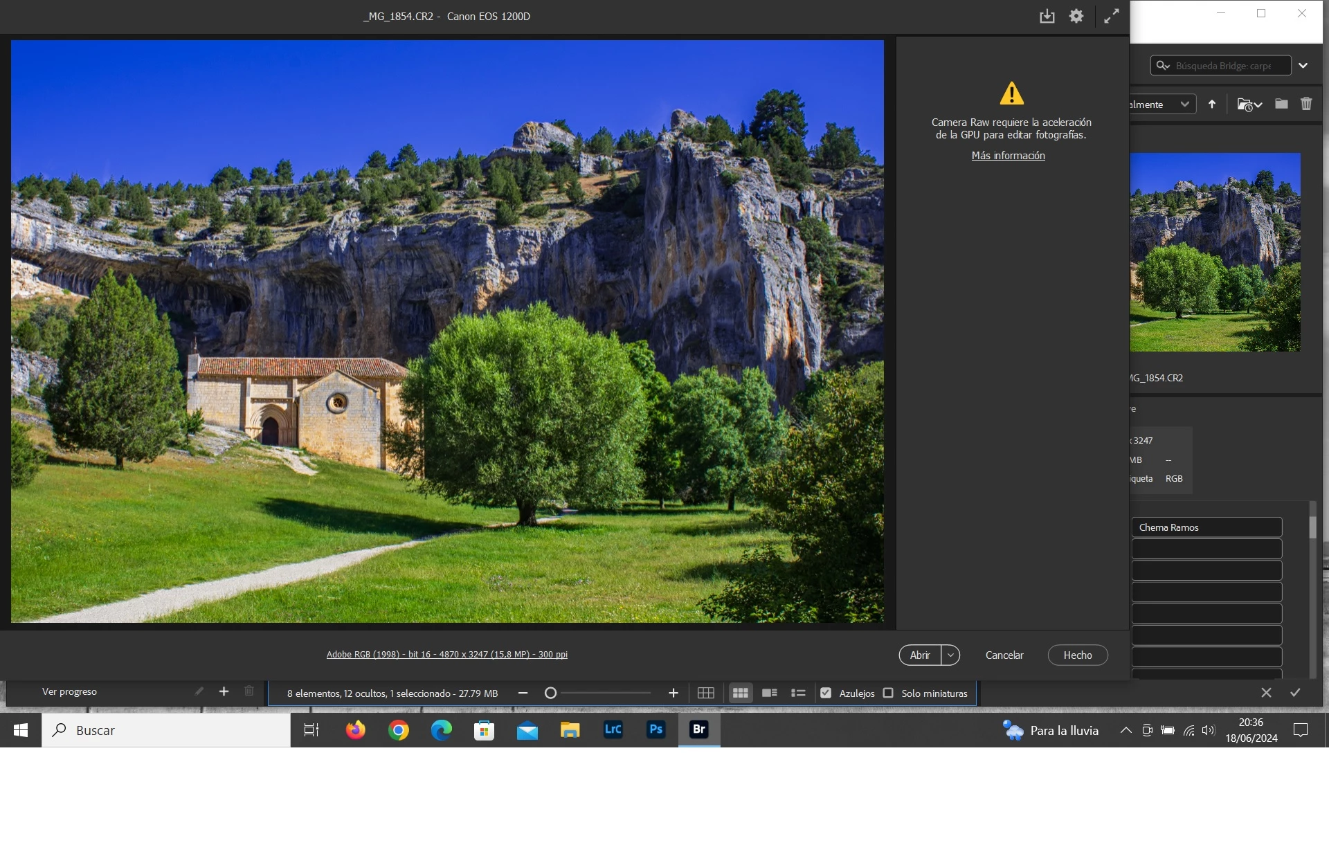 Hola, tengo un problema con Camera Raw, me dice que requiere la aceleración de la GPU y está activada, Photoshop y Lightroom sí la reconoce, pero Camera Raw no, ha sido hace poco, antes no me había dado éste problema, agradecería ayuda. Mando captura del mensaje, gracia de antemano.