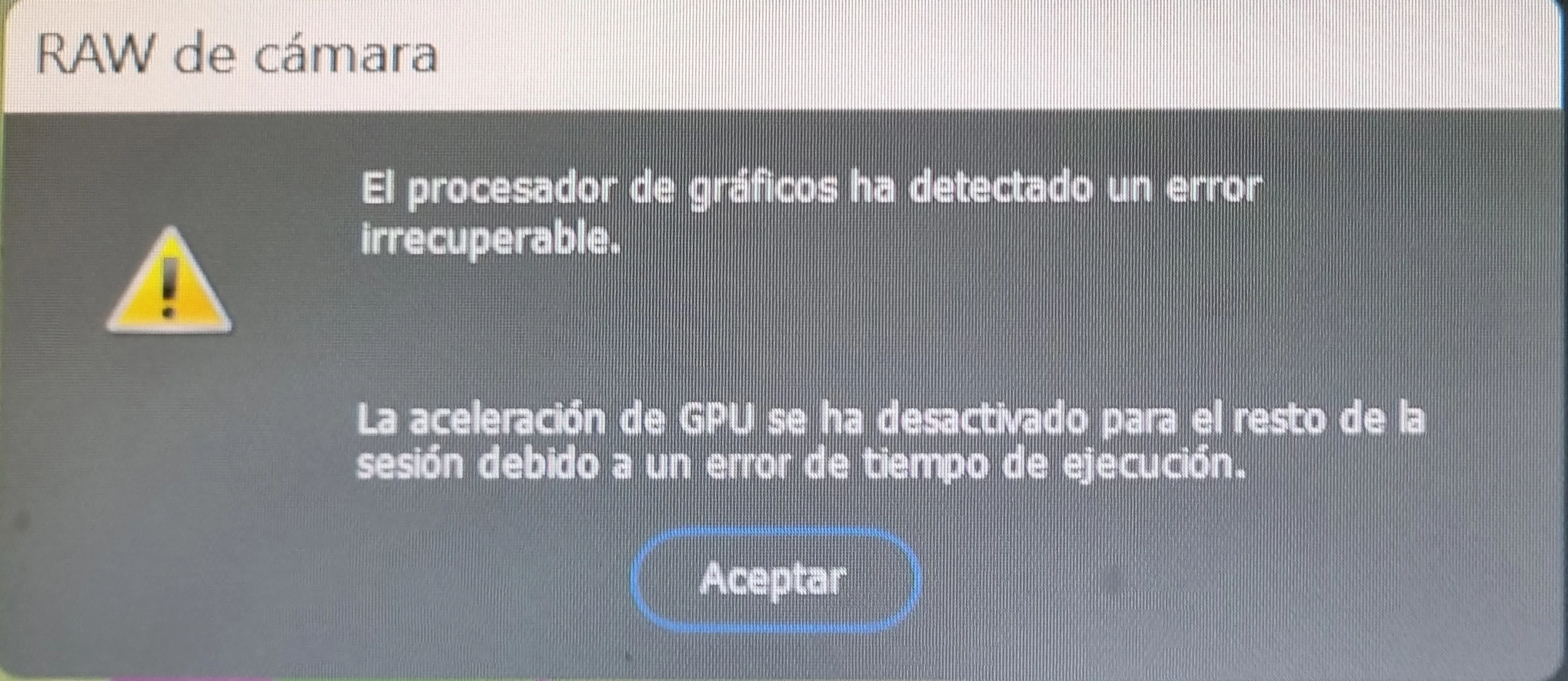 Error irrecuperable de GPU en Camera RAW