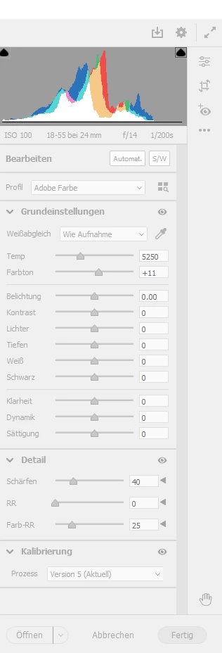 ich nutze Camera Raw Version 13 unter Photoshop Elements 21, dies ist so durch das Studium gestellt. Mein Problem ist, dass nicht alle Werkzeuge angezeigt werden. Aber auch die möglichen Einstellungen nicht wie dargestellt vorhanden sind. Die obere Leiste ist komplett leer und auch in der unteren Leiste ist nichts was helfen würde.