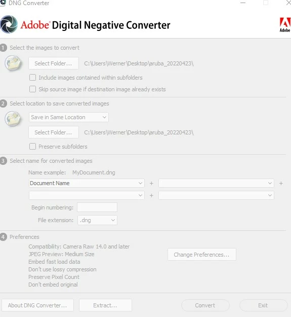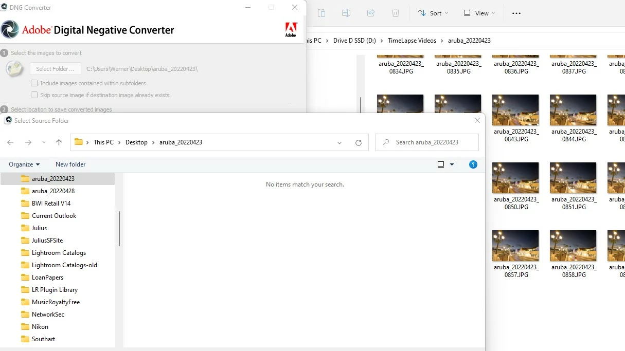 Files are not showing in Adobe Digital Negative Converter