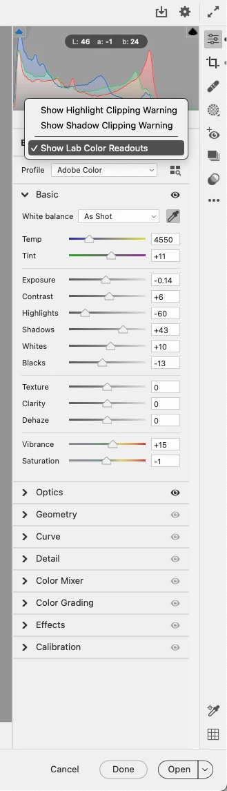 Geting L*a*b* readouts in ACR stand alone just like in Lightroom
