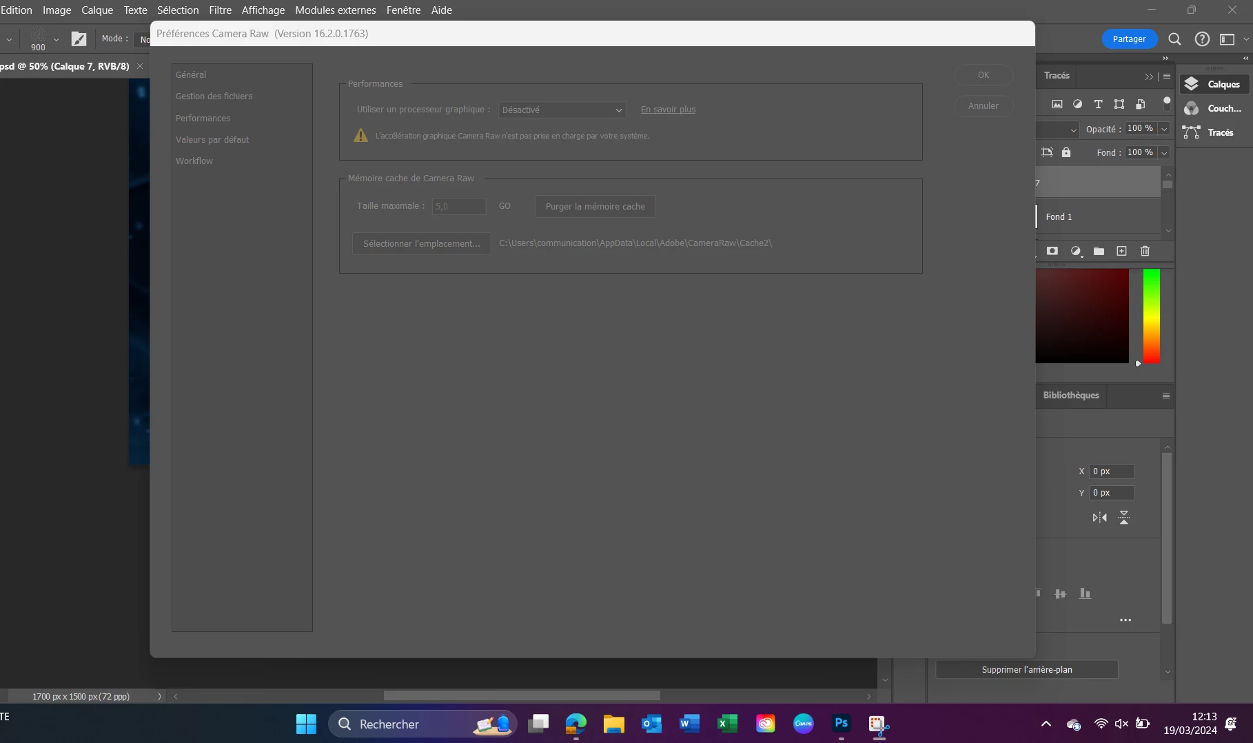 Photoshop s'est bloqué le 14/03/2024 à 15:30:03 (GetImageViewResourceSharingGLContext)