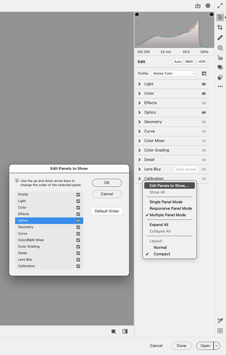 Right click on one of the Panels, click Edit Panels to Show, then highlight a Panel and use