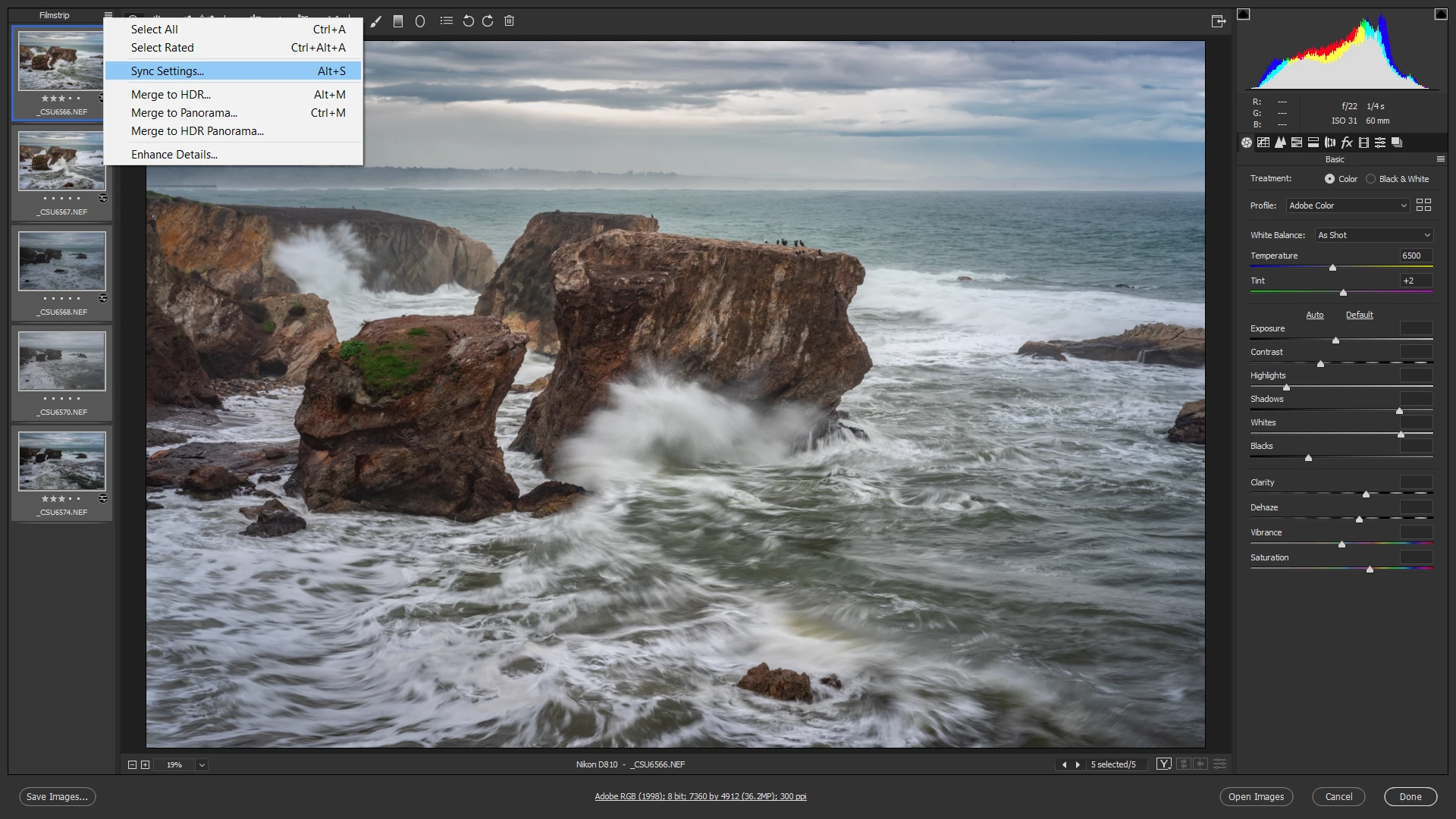 I have opened a set of images I wish to get looking the same, so I have them all down the left side, but see no way of applying the slider settings of the one just tweaked to the next one. Only if I open the one I just adjusted into photoshop can I then reopen the rest of them and use 'previous conversion' option, but that means I am committed to opening that last one and all those above it yet I am not ready yet to commit changes, they are a WIP and I am needing to see them all at the same time, I am going up and down the stack until happy with my settings and they all look the same as I arrow key or mouse click my way up and down them.