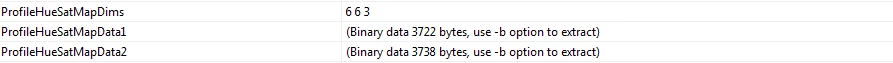 According to the specification, both the size of ProfileHueSatMapData1 and ProfileHueSatMapData2 equals HueDivisions * SaturationDivisions * ValueDivisions *3 . But the values of these two tags as shown above are way beyond 6*6*3*3 (324) and 90*30*1*3 (8100), which are ~3722 and ~137285.