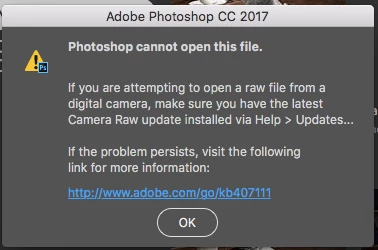 I'm helping one of you can help... I have updated both all of my CC adobe applications to 2017. I am trying to open my .CR2 raw files from my Canon Rebel XSi. I have installed Camera Raw as well as all of the updates. Clearly I am doing something wrong, but I keep getting this message when I try to open or import images from my camera into Photoshop or Lightroom: