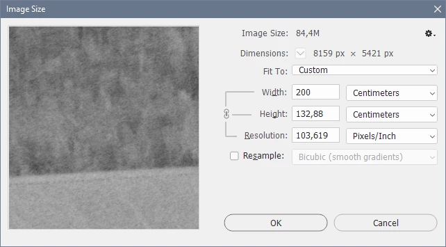 The screenshot below shows the Image size dialog for the image I posted previously.
