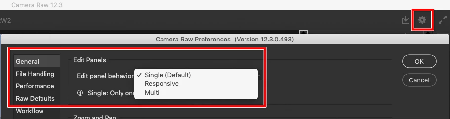 I update camera RAW to12.3 and UI was change can I change it back to older version