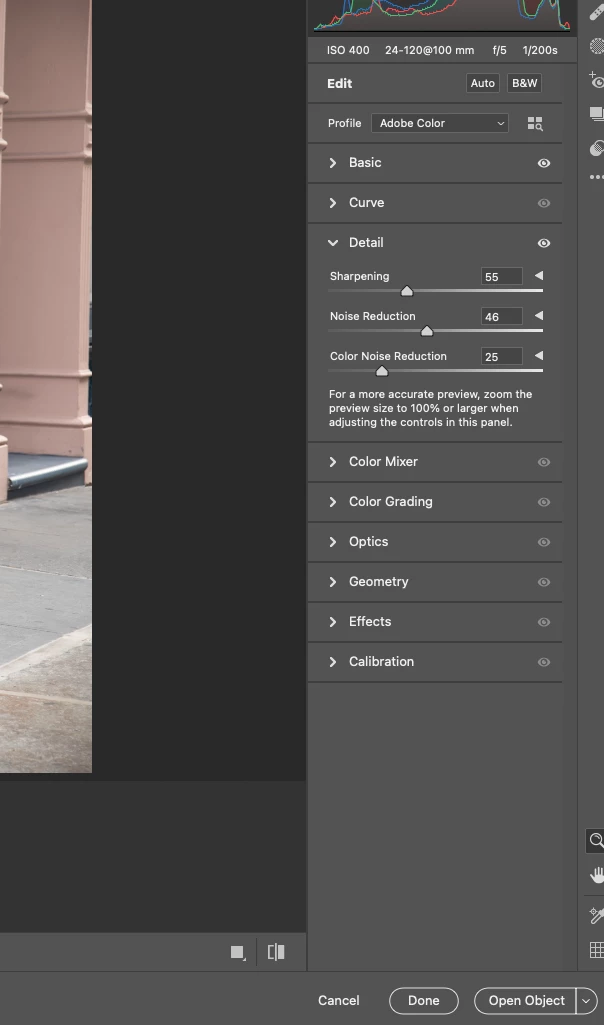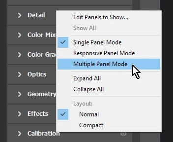 i used to be able to have one screen open with Basic Adjustments and then ALSO with noise and sharpening sliders (detail). now i must toggle back and forth which is very time consuming. also when i go to the noise section the other tabs close and i have to re open everything again..