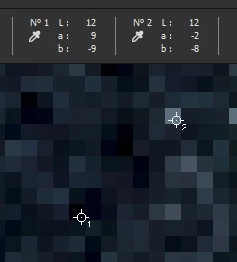 Par exemple, dans l'image communiquée, le point 1 est incontestablement plus sombre que le point 2, hors, la valeur L affichée est la même : 12.