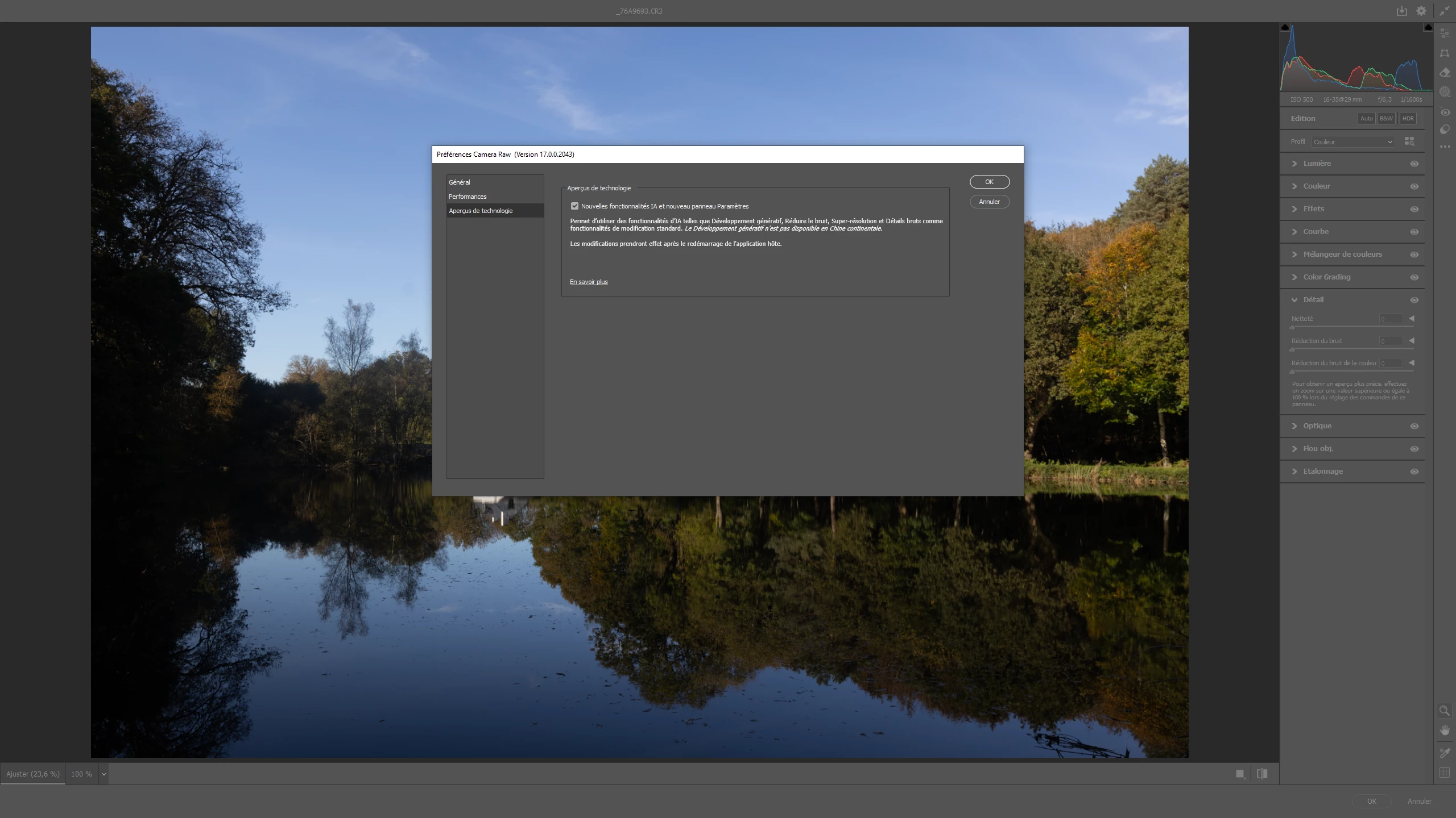 i've recently upgrade to camera raw v17, i've some problem with the panal, as i've no crop tool, no Ai denoise or Ai super resolution although i 've correctly activated Ai in camera raw parameters