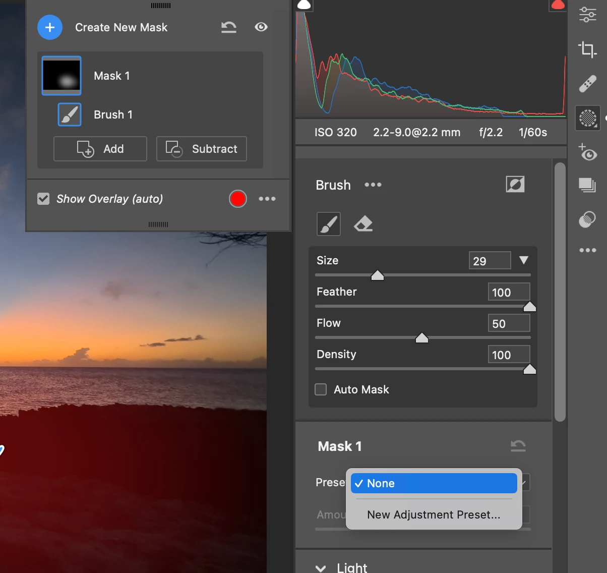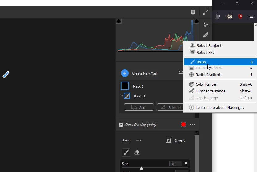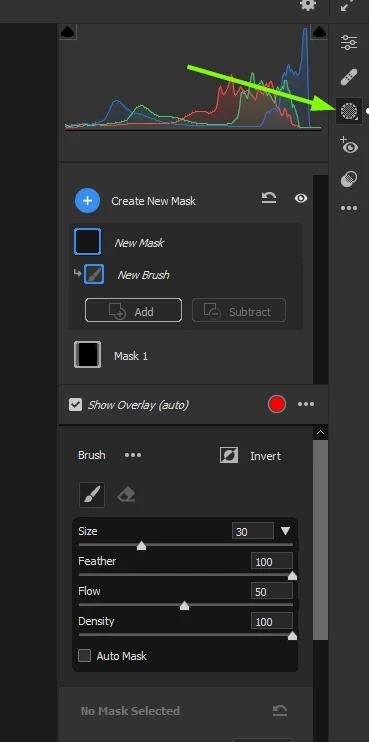 Press K on the keyboard or click and hold on the masking icon to reveal the options