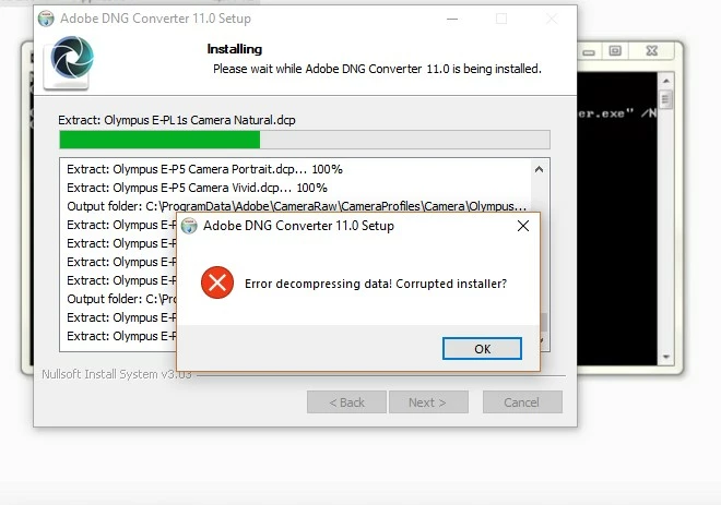 NSIS error: Camera Raw 11.0 & DNG Converter 11.0
