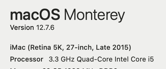 I updated to the latest OS that my 3.3 GHz Quad-Core Intel Core i5 will run: 12.7.6.