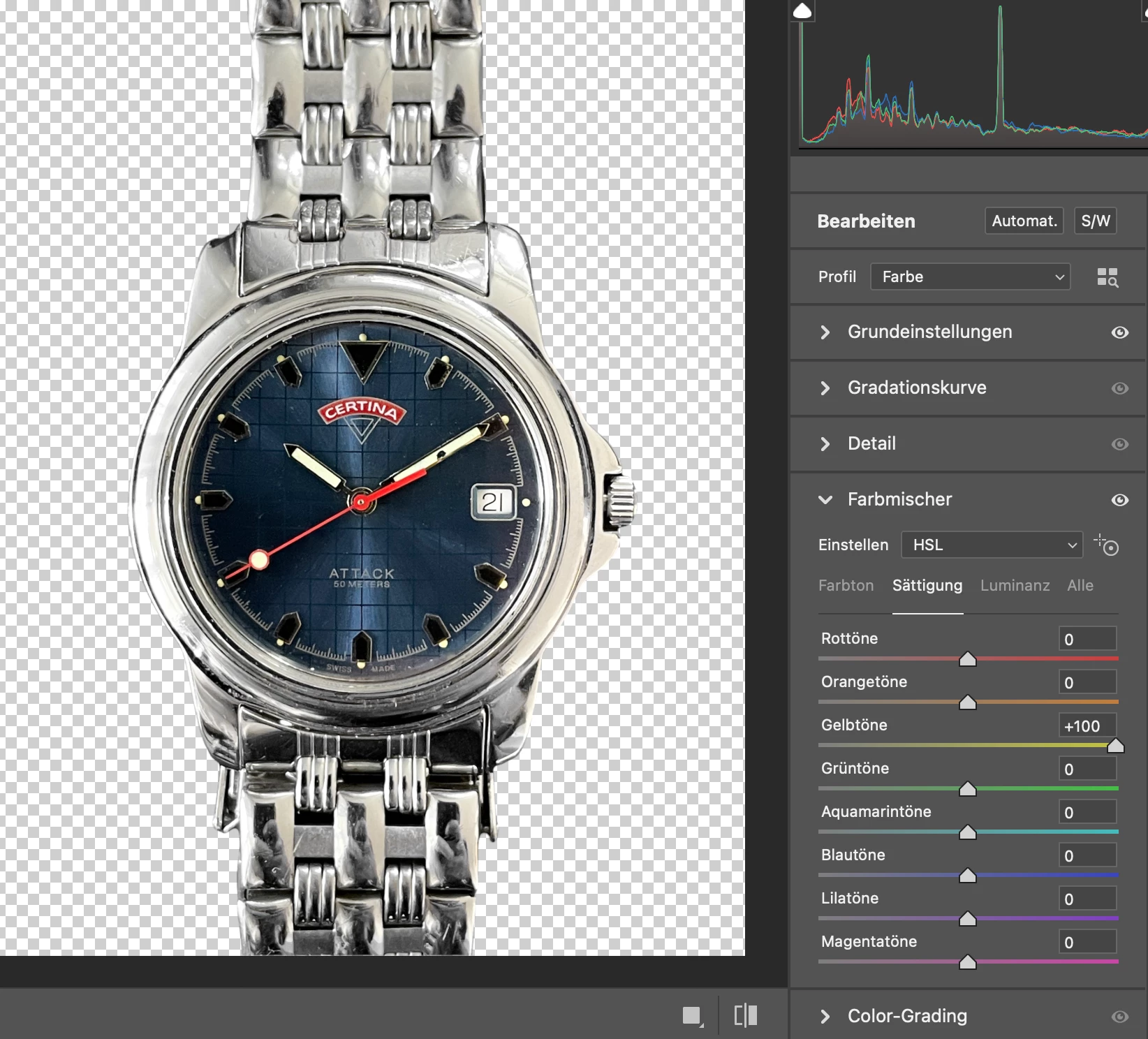 I used the radial filter to completely desaturate the casing of a watch. when I then boosted some yellow in the saturation in HSL, I noticed that the casing I actually desaturated before with the radial filter suddenly gains saturation again.
