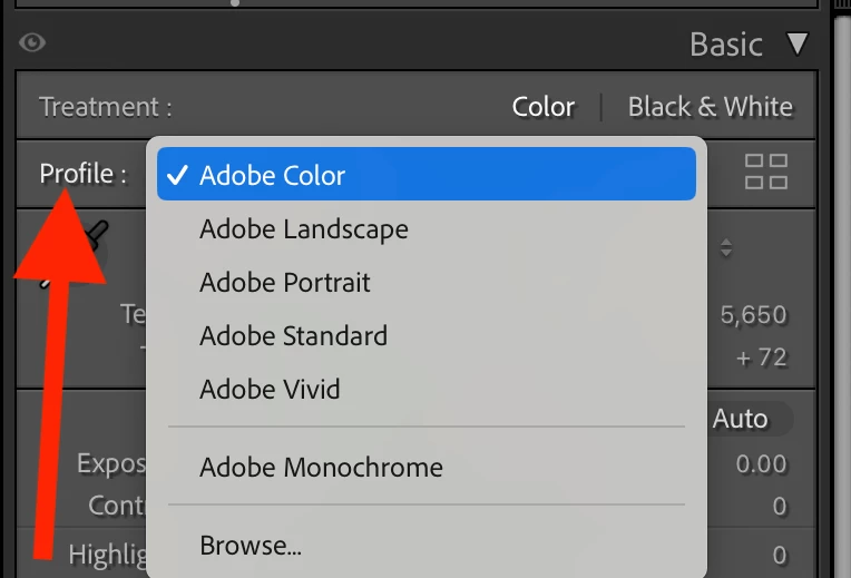 Camera Profiles (file extension .dcp) tell LR how to interpret raw files and turn them into pleasing images. You can see the available profiles for a raw file in the Profile menu in Develop's Basic panel: