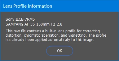 The Samyang 35-150mm f/2-2.8 is an amazing lens, but there is no correction profile for it on Lightroom (I'm using a Sony A7IV).