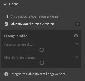 Was bedeutet "Integriertes Objektivprofil wurde angewendet"?