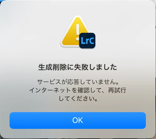 「サービスが応答していません。インターネットを確認して、再試行してください。」