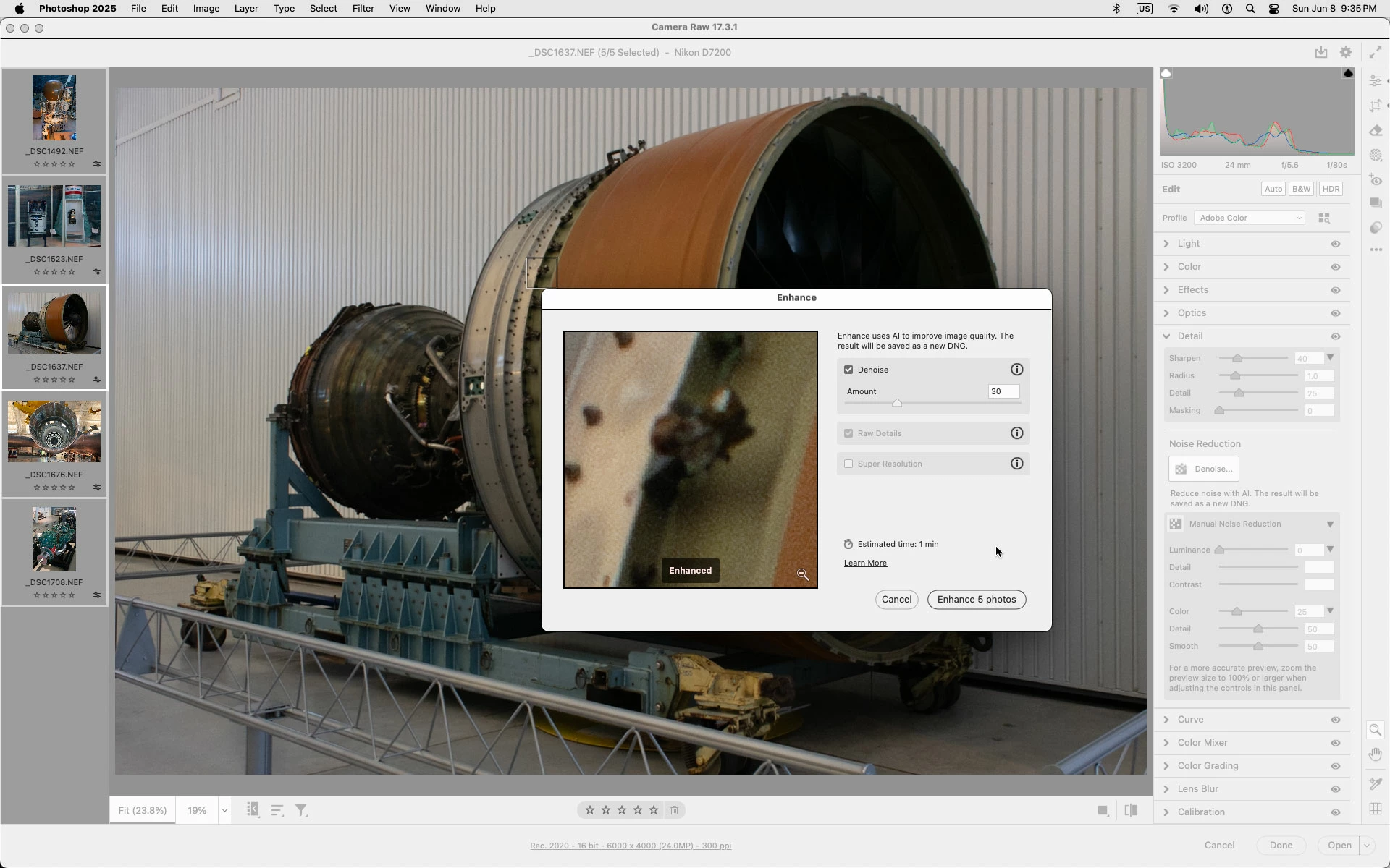 2. Select all the photos and denoise to create new DNG file for each of them (Screenshot 1)