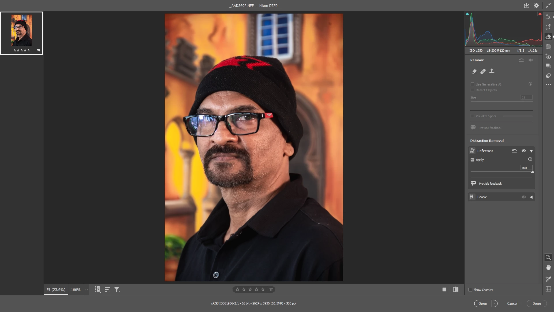 To improve the performance and results of this feature, it is important that examples of images that are failing to properly remove the reflections are forwarded to the team via your report.  A large variety of file formats are allowed as attachments in these forum posts. The best option is to attach your image's raw file directly to your feedback post. Note that there is a 50 MB limit on an attachment's file size. If your raw file is too large to attach, the best option is to share the file via a file-sharing service (Dropbox or similar) and then share the link in your feedback post. Thank you for continuing to provide feedback on this Tech Preview!