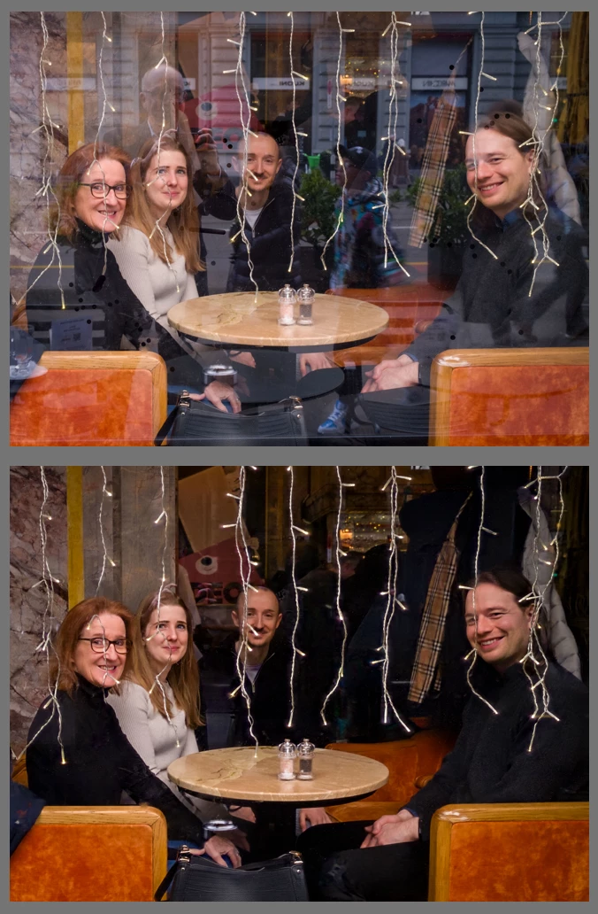 Really pleased so far with my test images - I've travelled a lot by plane and train and have many images looking inside-out with reflections which I (now thankfully) did not delete. Here is an example of before and after. Thank you. I'll continue to experiment.