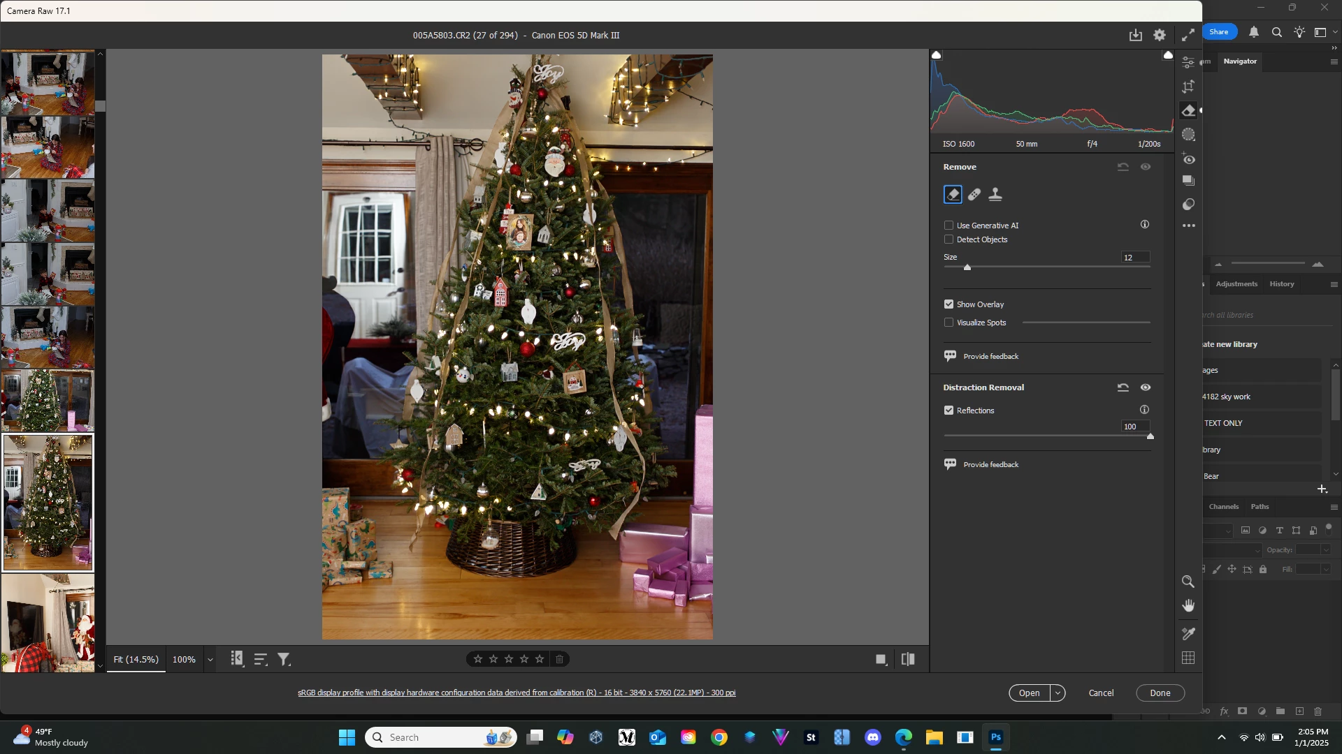 I'm using this just on family photo on christmas morning. I have 2 large sliders with the tree in front. The tool didnt work on the glass door reflections but the highlights from the chritmas lights on the tree. The only thin i did was lens profile correction. I didn't even get the to verticals yet.