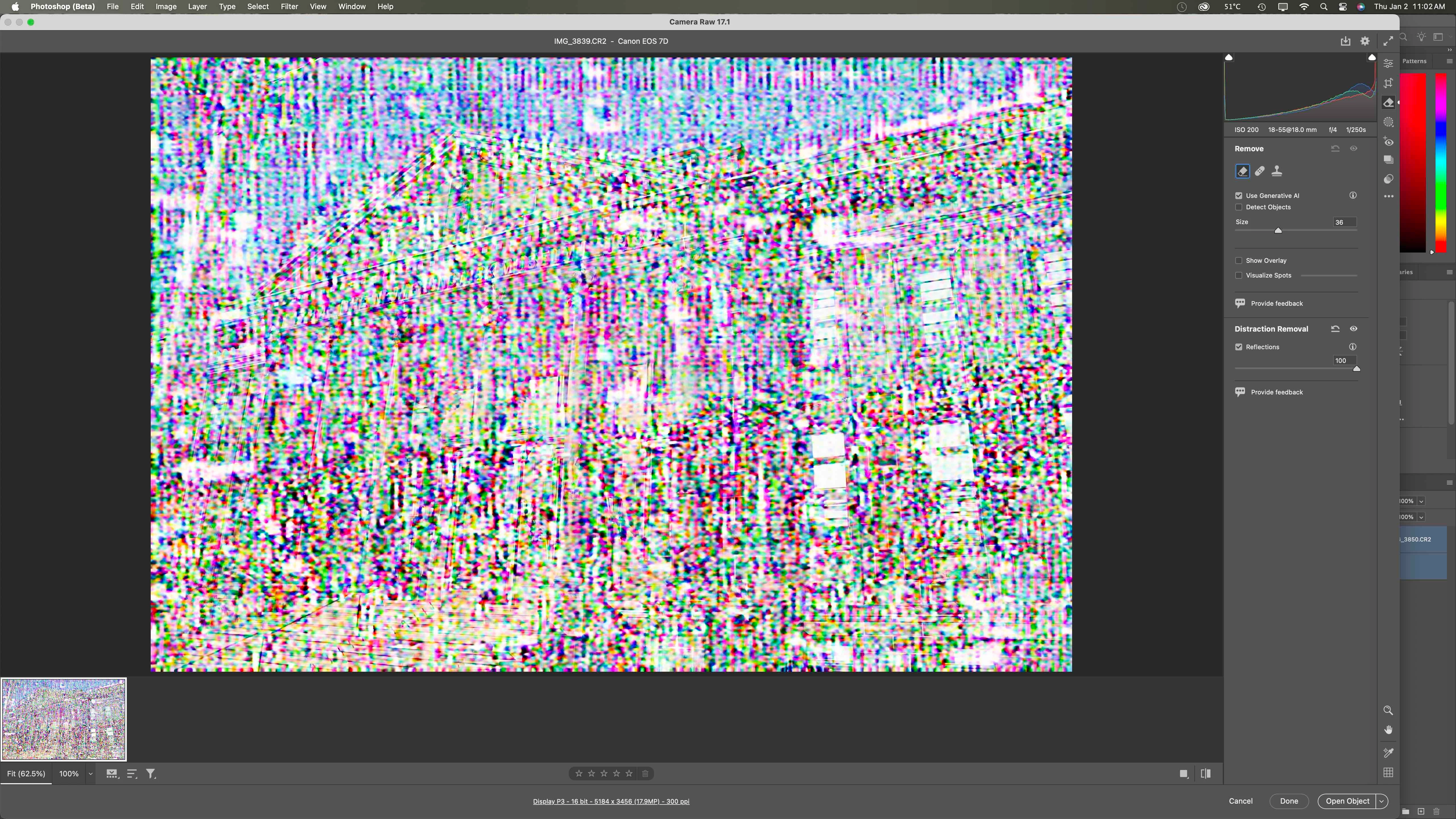 Back to RAW/my example: I totally understand that removing/altering noise changes the picture for reflection removal. It also makes far more sense to use a targeted feature like this for reflection removal than an attempt at generative removal. However, AI Denoise is a pretty fundamental use case in ACR/Lightroom these days, I think. It is for me, at least! I use it more than half of the time with my RAW images. So, I think my feedback is that it really needs to work alongside/with AI Denoise! (I.e. it should have a similar effect to image #4 as image #3.)