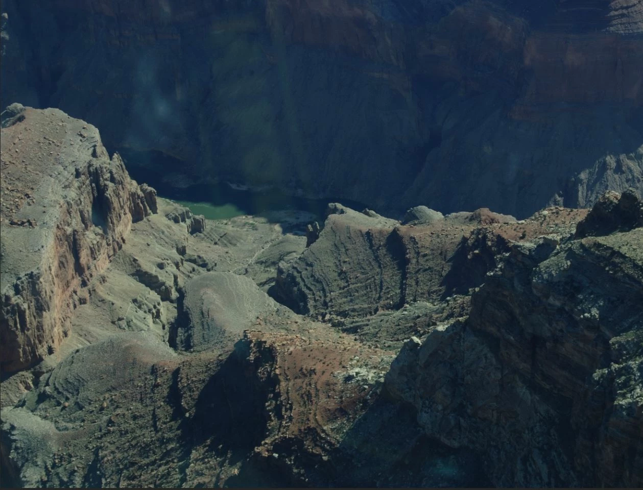 This is an image that I thought would be pretty clear-cut: Photo out of a plane window. Some obvious reflections in the window against a fairly flat sky.