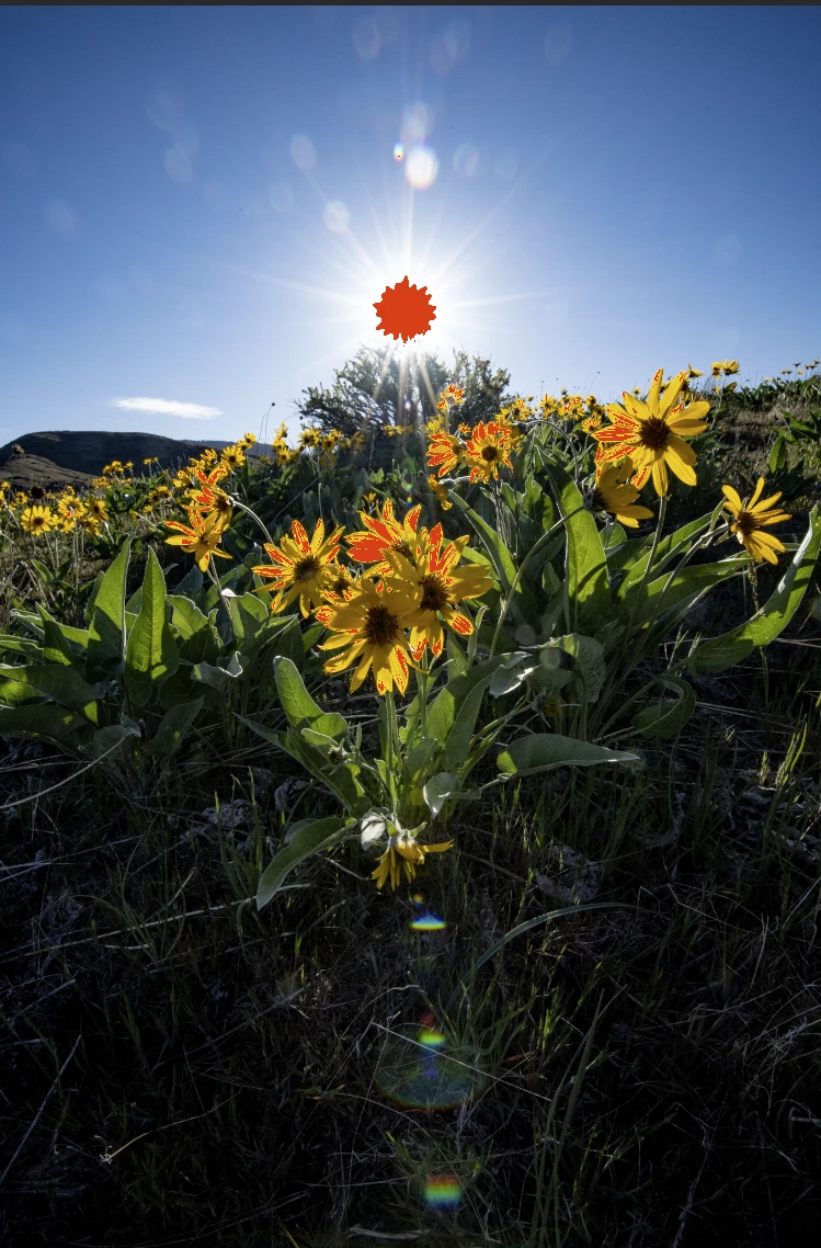 Notice that I still have a burned out warning about the center of the sun, but all of the reflections inside the lens that resulted in the multiple lens flare spots are gone.  And the nice thing about this is that it did not try to remove the star bust rays from the sun.  A couple years ago I spent a long time cleaning up this image with traditional tools in Photoshop.